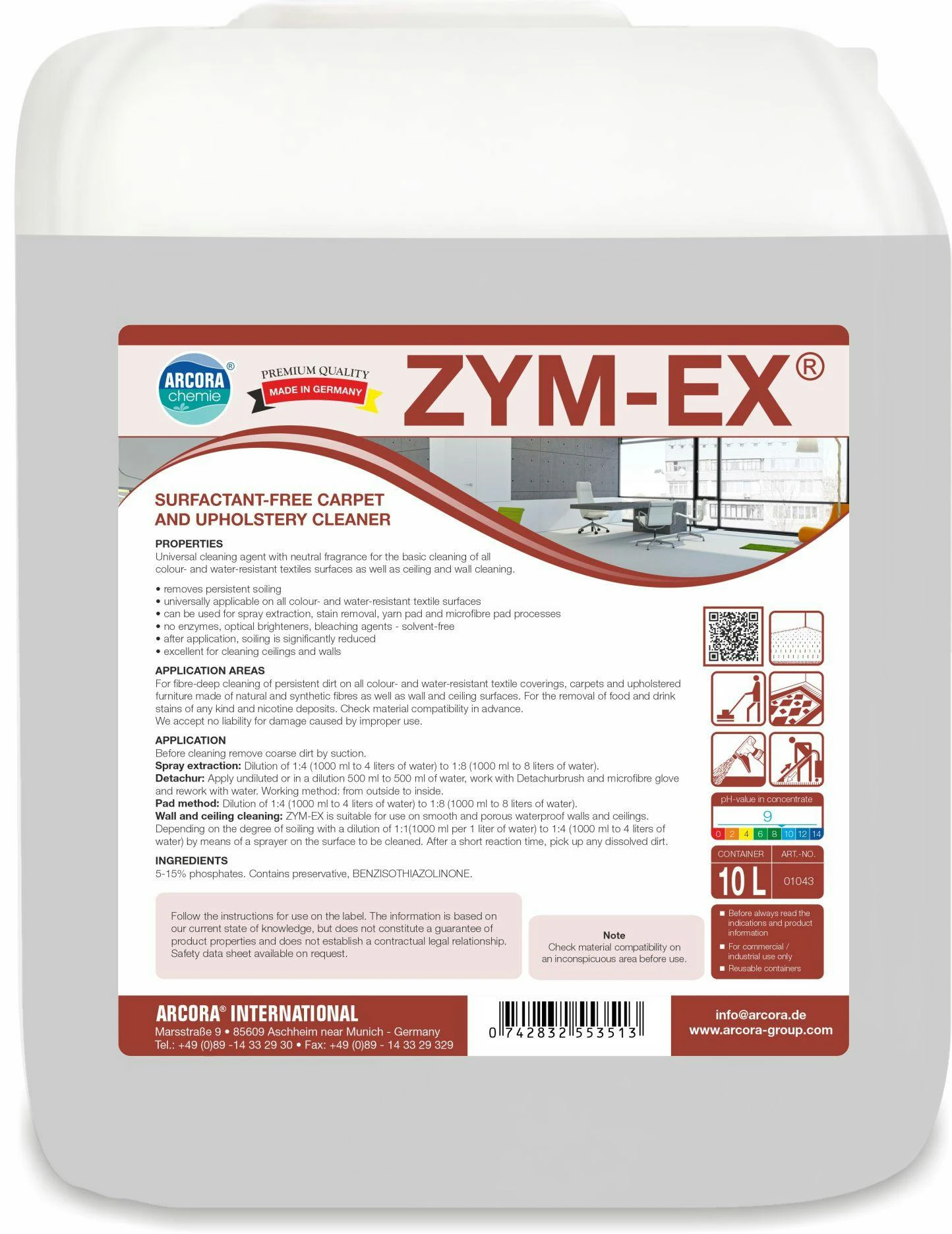 Universelles Reinigungsmittel mit neutraler Duftnote für die Grundreinigung aller farb- und wasserbeständigen textilen Oberflächen sowie Decken- und Wandreinigung.